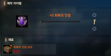 인장 상자 8개로 +3 인장이 확정 제작 가능합니다. 지금은 축+3 인장도 나왔기 때문에 최종 목표는 축 +3 인장이라고 생각하시면 됩니다.