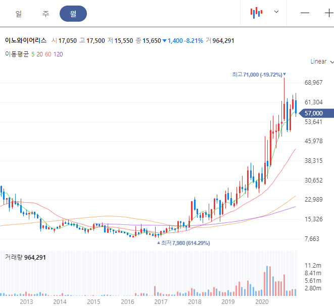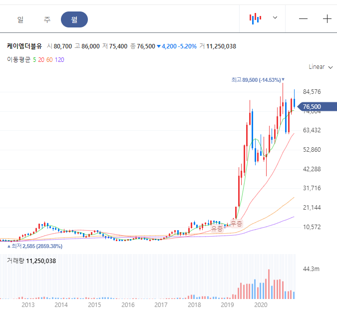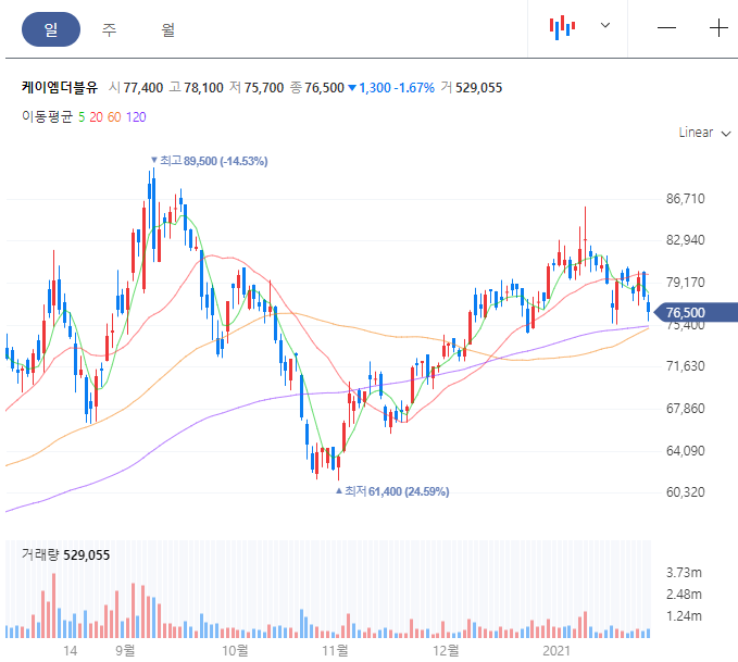 코로나로 인해서 5G 관련한 설비의 투자가 전 세계적으로 부진했었는데 올해부터는 다시 투자의 확대 소식이 들려오면서 주가 상승이 있었습니다. 케이엠더블유는 삼성전자에도 5G 장비를 공급하고 있고 일본의 라쿠텐 모바일, 미국의 디시네트워크에도 공급을 하고 있습니다.