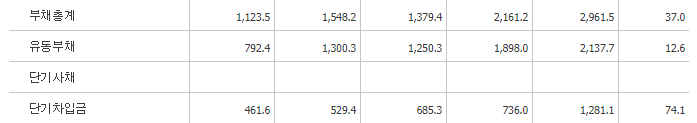 매출도 점차 증가추세를 보이고 있고 흑자전환을 하였습니다. 영업이익은 전년대비 약 621% 증가율, 당기순이익은 약 428% 증가율을 보여주고 있습니다.
