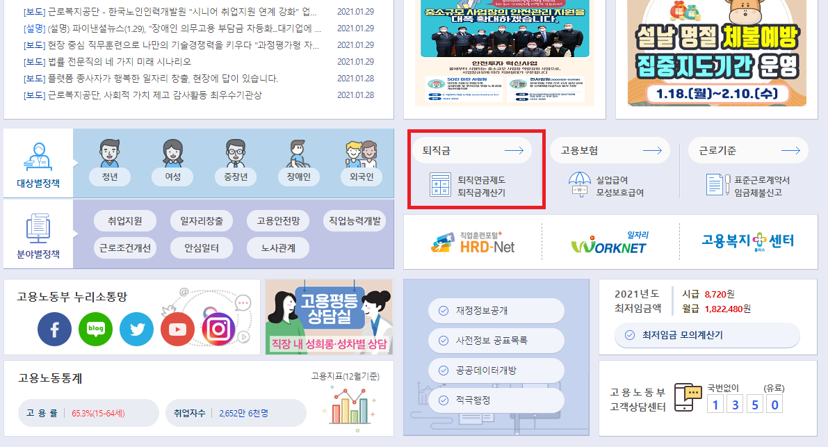 고용노동부 홈페이지로 검색을 하시거나 아래 링크로 접속하시면 됩니다.