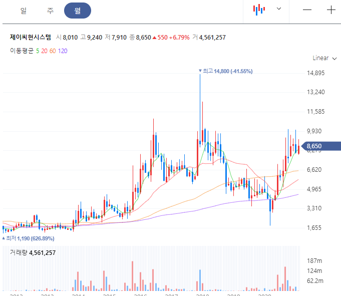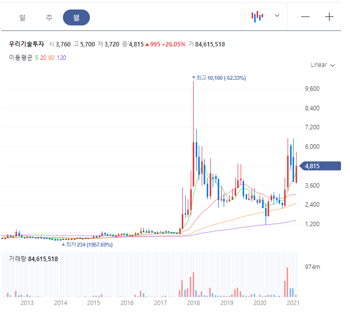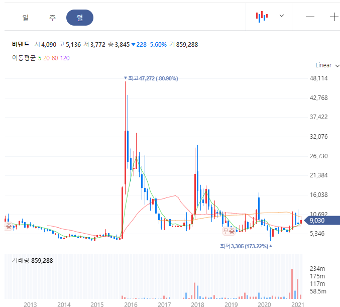 2018년도의 최고가 10,100원은 아직 다시 갱신하지는 못했지만 가상화폐의 상승과 함께 주가도 변동을 보여주고 있습니다. 하지만 가상화폐의 불확실성으로 주가의 큰 급등이나 안정적인 모습은 보여준다고 보기는 어렵습니다.