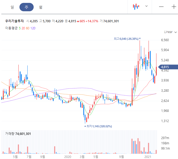 자산총계는 약 831억 원, 부채총계 76억 원, 부채비율은 약 10%의 재무상태를 확인하실 수 있습니다. 주가 흐름은 가상화폐의 급등 흐름과 어느 정도는 맞물려 있으나 역시 조금은 불안한 테마주이긴 합니다. 그래도 테슬라의 비트코인 매입 소식이 이러한 시장에 어떻게 반영될지를 주시하는 것이 중요하겠습니다. 관련 급등 소식 분석에 대해서는 글 하단 부위 분석들을 모아두었습니다.
