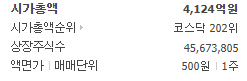 시가총액 4124억 원, 코스닥 202위의 기업입니다. 아래에서 주가 차트를 보시겠습니다.