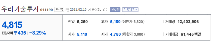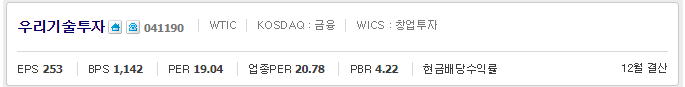 우리기술투자 주가 확인 바로가기(finance.naver.com/item/main.nhn?code=041190)