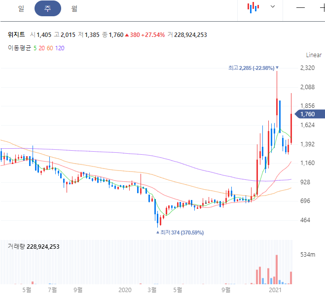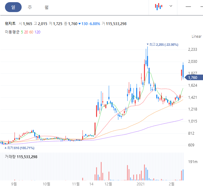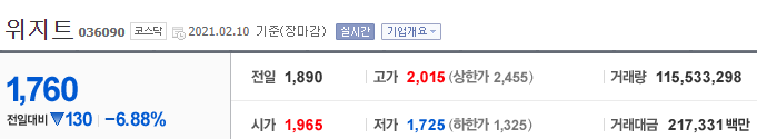 위지트 주가 확인 바로가기(finance.naver.com/item/main.nhn?code=036090)