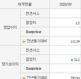 영업이익은 전년 동기 대비 3,964%, 당기순이익은 2,113% 정도를 나타내고 있습니다.