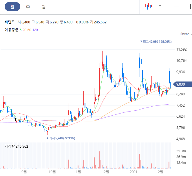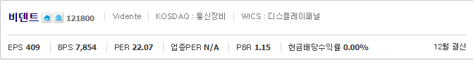 비덴트 주가 확인 바로가기(finance.naver.com/item/main.nhn?code=121800)