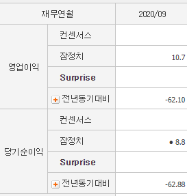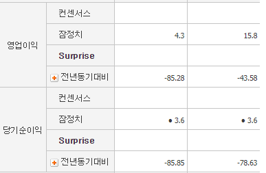 영업이익은 전년동기대비 -81%, 당기순이익은 -93% 입니다.