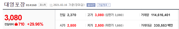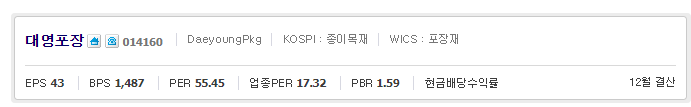 대영포장 주가 확인 바로가기(finance.naver.com/item/main.nhn?code=014160)