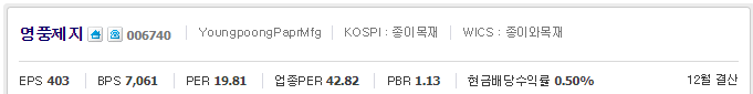 영풍제지 주가 확인 바로가기(finance.naver.com/item/main.nhn?code=006740)