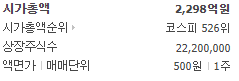 시가총액은 2298억원, 시가총액순위는 코스피 526위의 기업입니다. 아래에서 주가 차트에 대해서 살펴보시겠습니다.