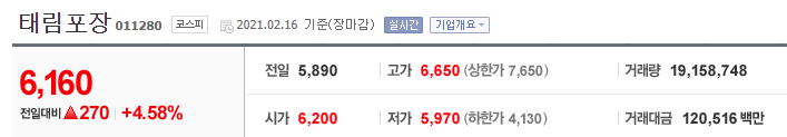 태림포장 주가 확인 바로가기(finance.naver.com/item/main.nhn?code=011280)