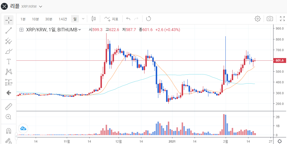 가상화폐 리플 '롤러코스터'…24시간 동안 국내서만 3.8조 거래, 성서호기자, 경제뉴스 (송고시간 2021-02-02 10:04)