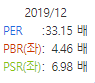 엔씨소프트 PER은 약 39배, 업종PER 36배보다 조금 높은 수치이며 PBR은 약 6.40배입니다.