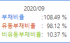최근에는 유동비율도 더 늘어나고, 부채비율은 더 줄어든 모습으로 조금 더 순방향으로 가고 있는 모습입니다.