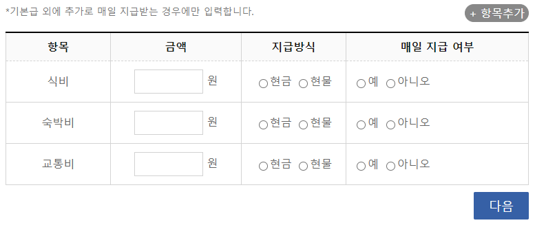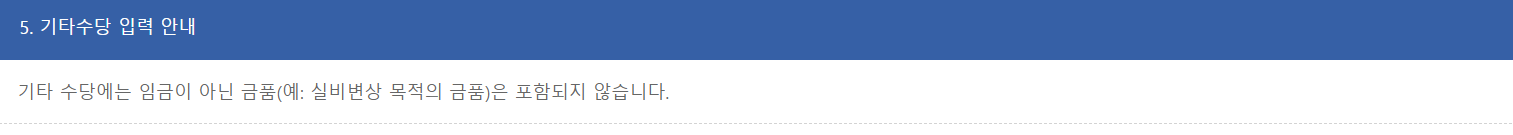 아래는 기타수당 관련 내용입니다. 받고 있는 경우에만 입력하시면 됩니다.