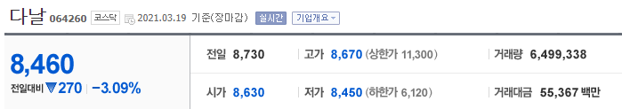 다날 - 네이버 금융 : 네이버 금융