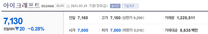 아이크래프트 - 네이버 금융 : 네이버 금융
