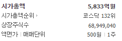 시가총액 5833억원 시가총액순위 코스닥 132위의 다날입니다.